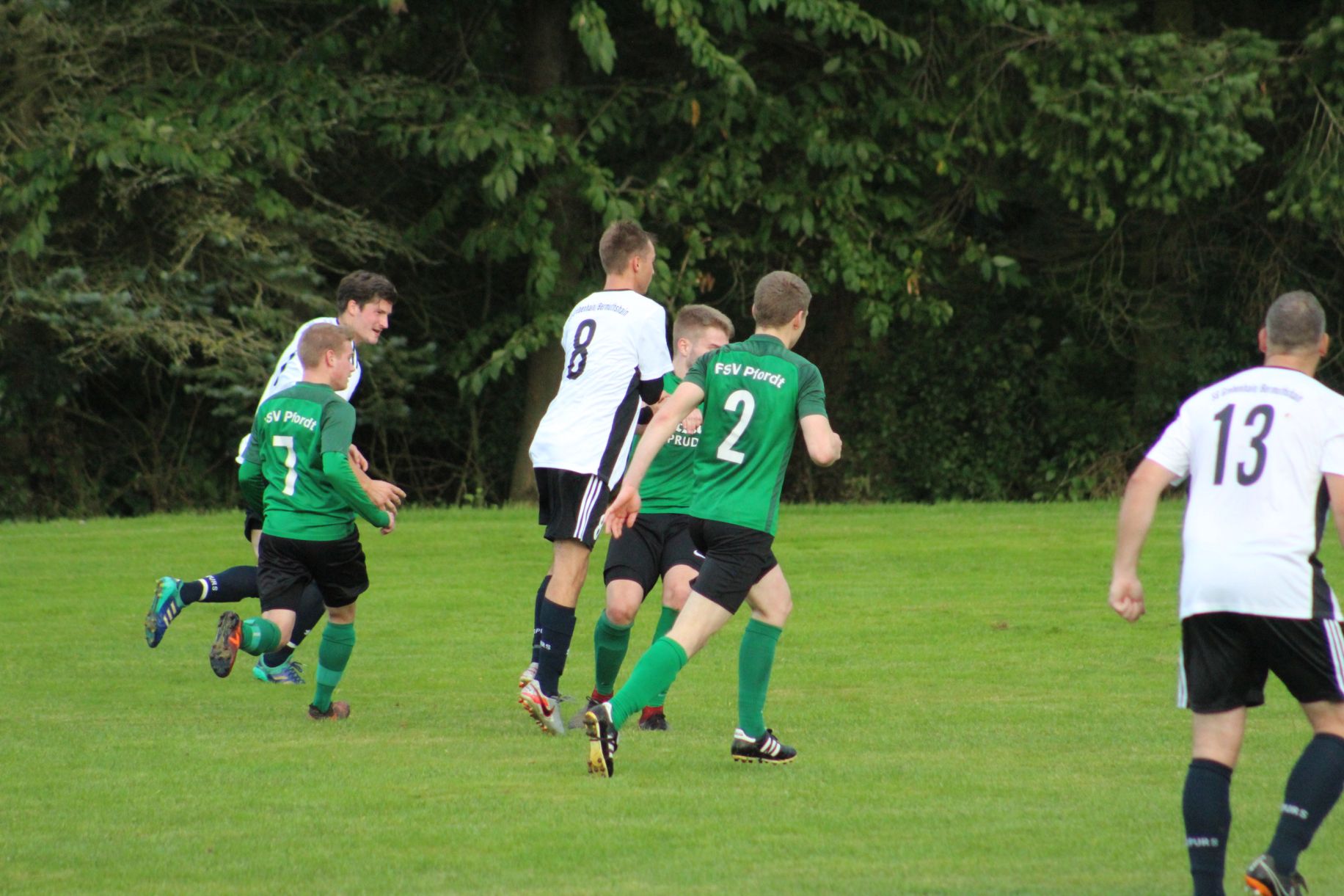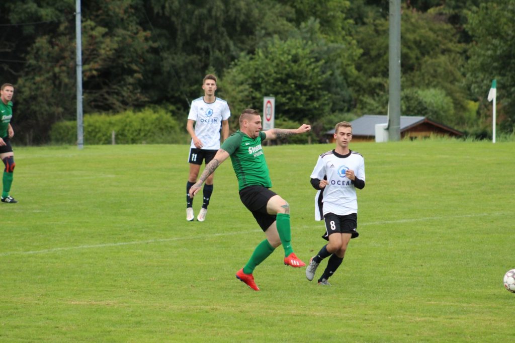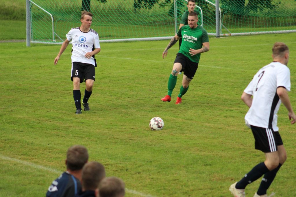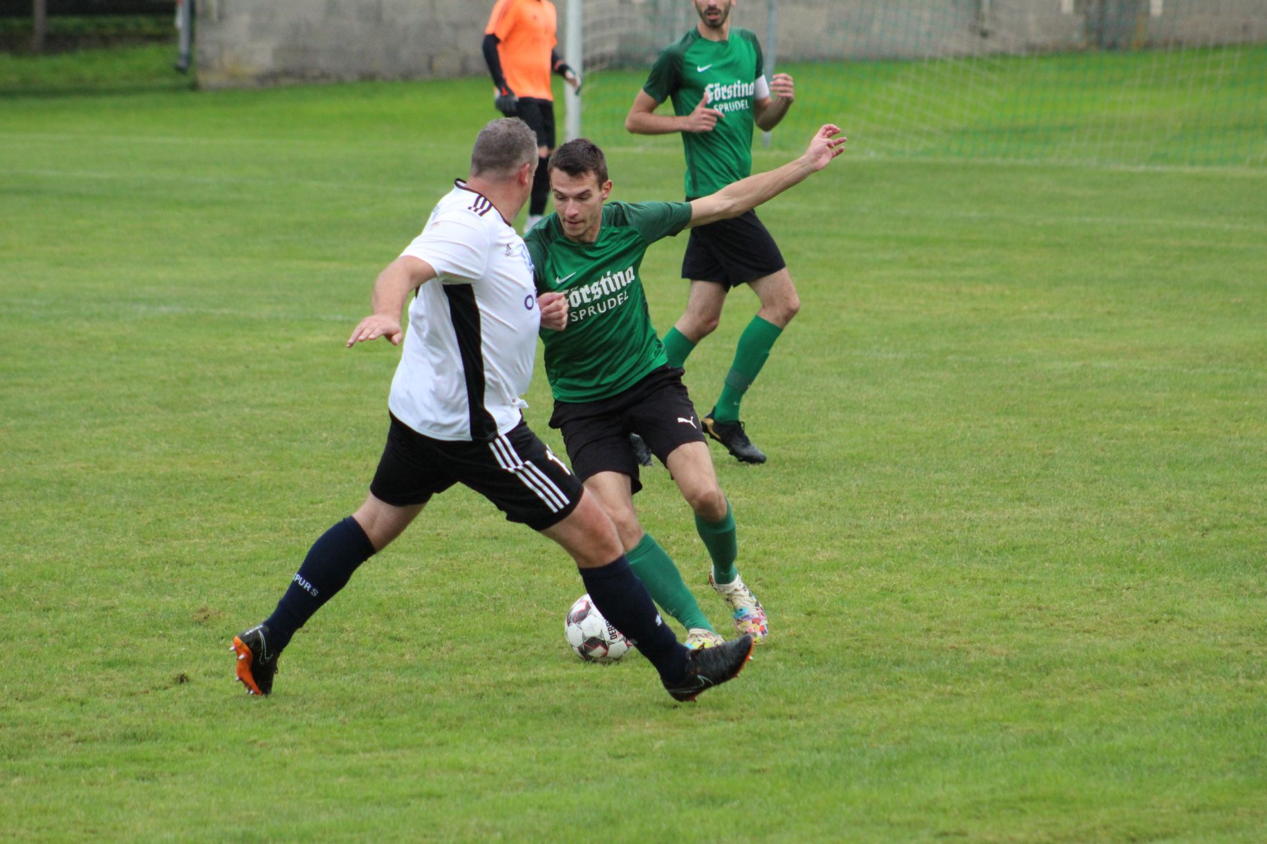 Auf der anderen Seite wurde es dann auch kurz vor der Pause nochmal gefährlich. Ein Fernschuss aus dem Pfordter Mittelfeld konnte der Torwart nicht festhalten. Der Ball sprang David Schäfer vor die Füße, doch der war zu überrascht und bekam keinen richtigen Druck mehr hinter den Ball.