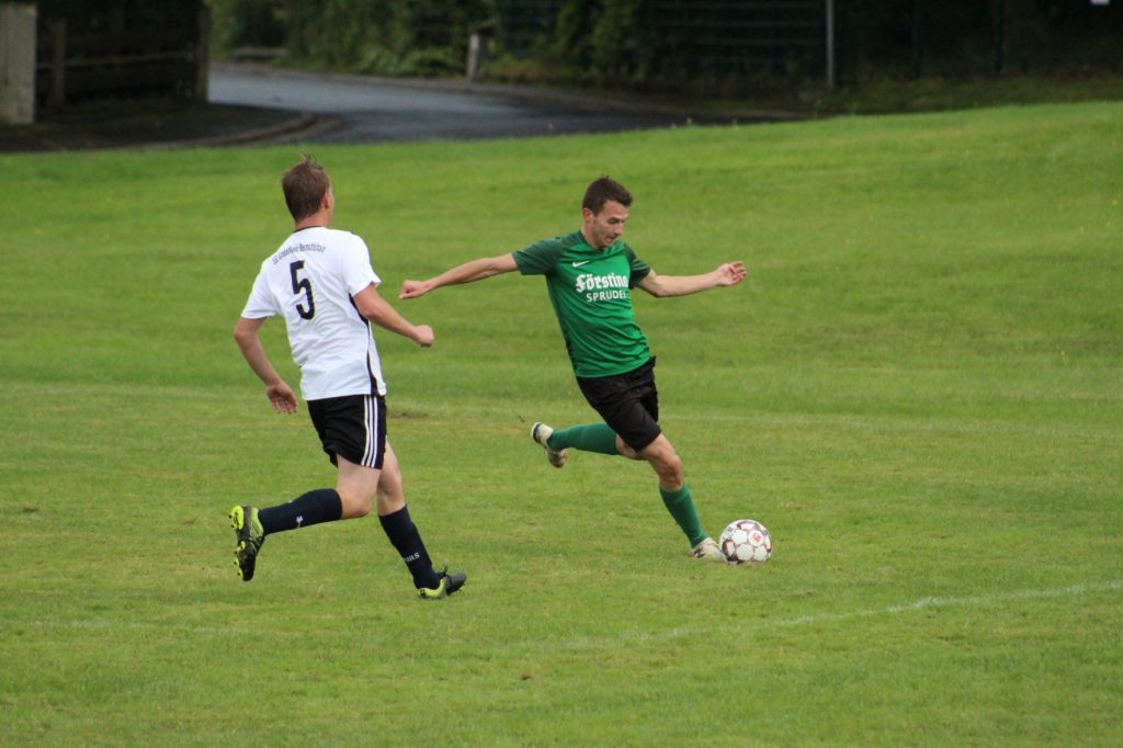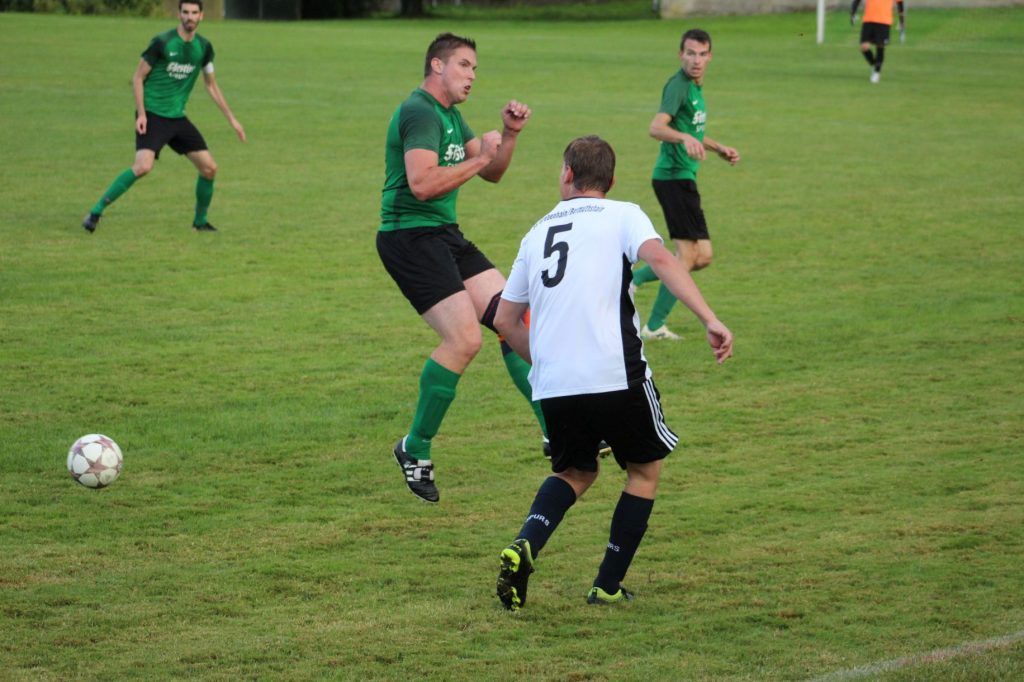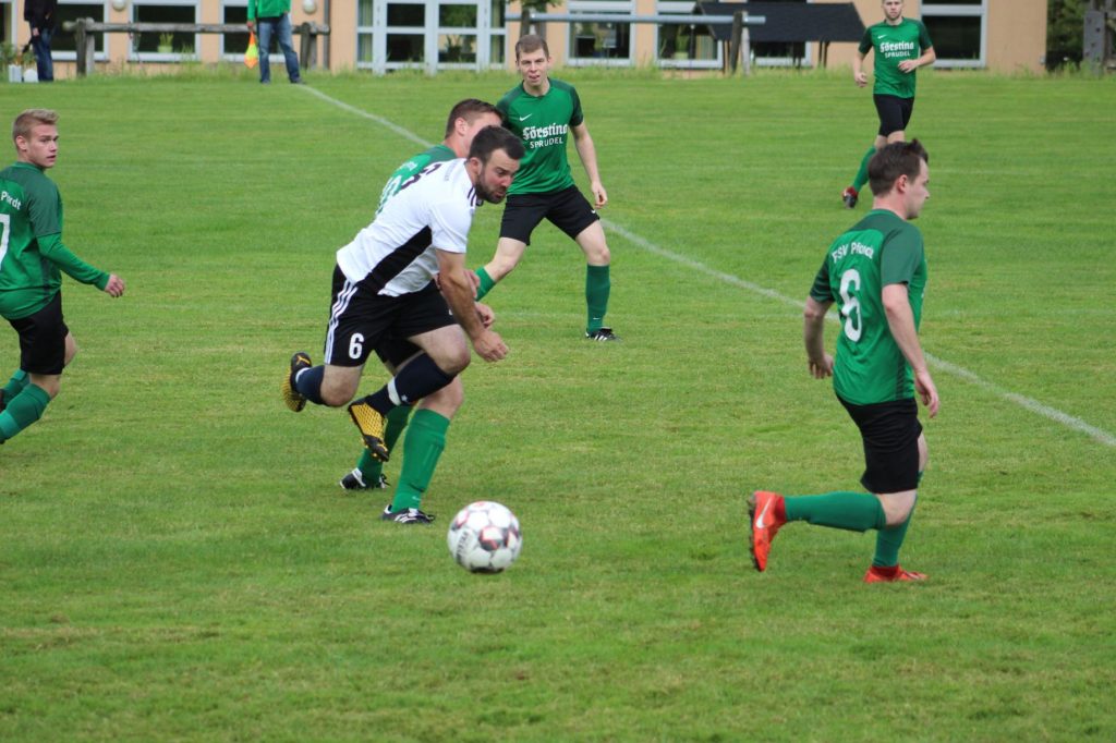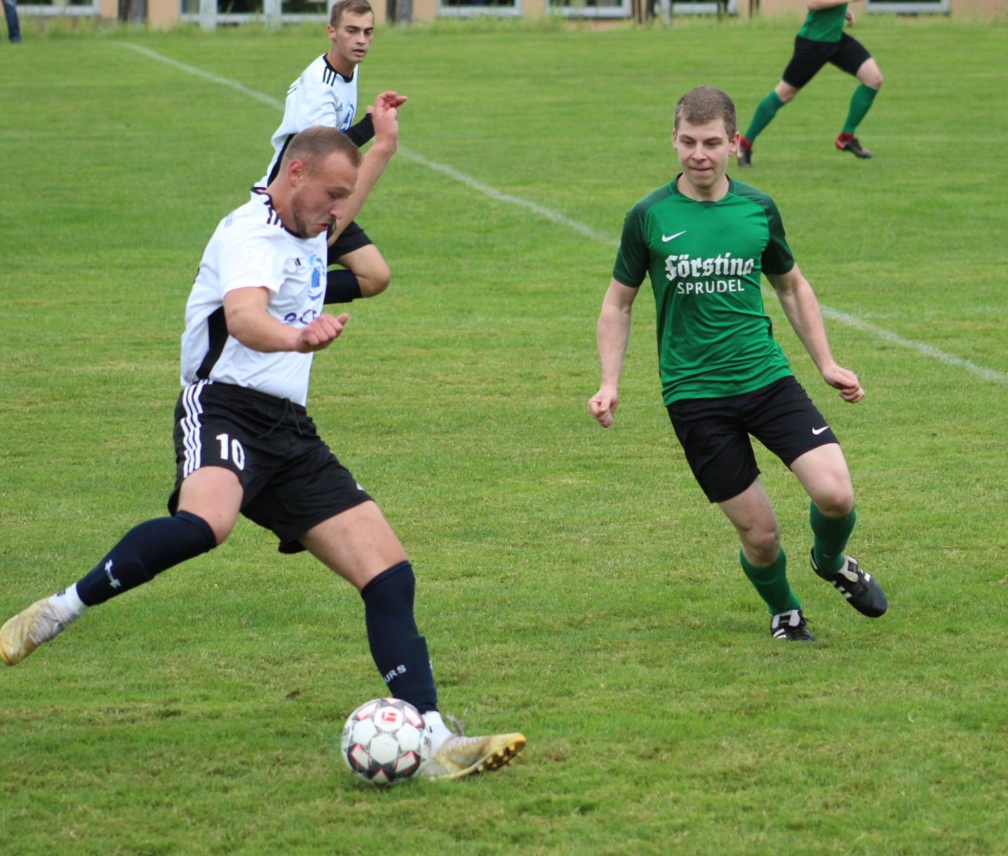 Auf der anderen Seite wurde es dann auch kurz vor der Pause nochmal gefährlich. Ein Fernschuss aus dem Pfordter Mittelfeld konnte der Torwart nicht festhalten. Der Ball sprang David Schäfer vor die Füße, doch der war zu überrascht und bekam keinen richtigen Druck mehr hinter den Ball.