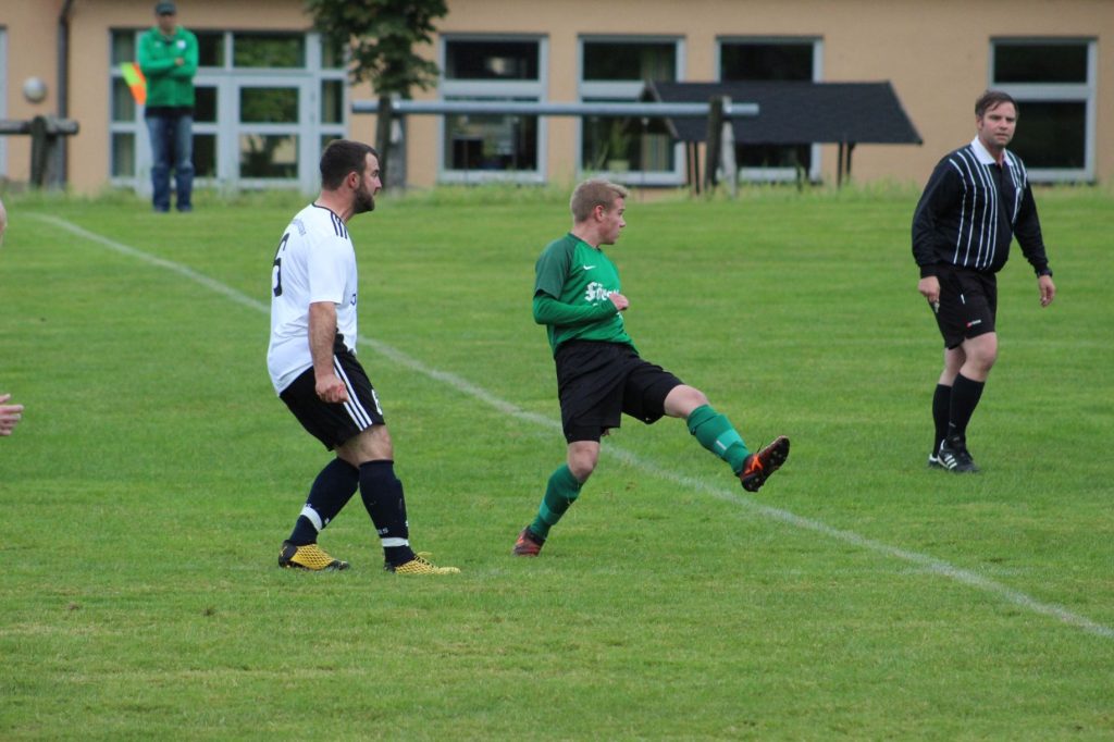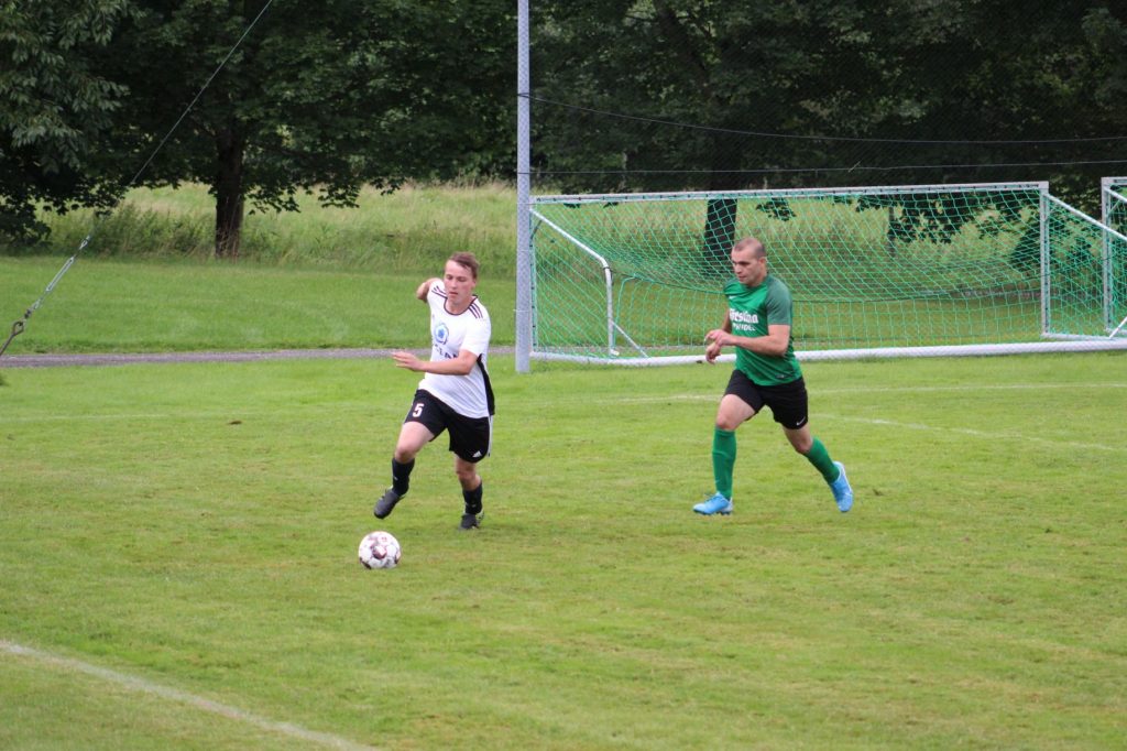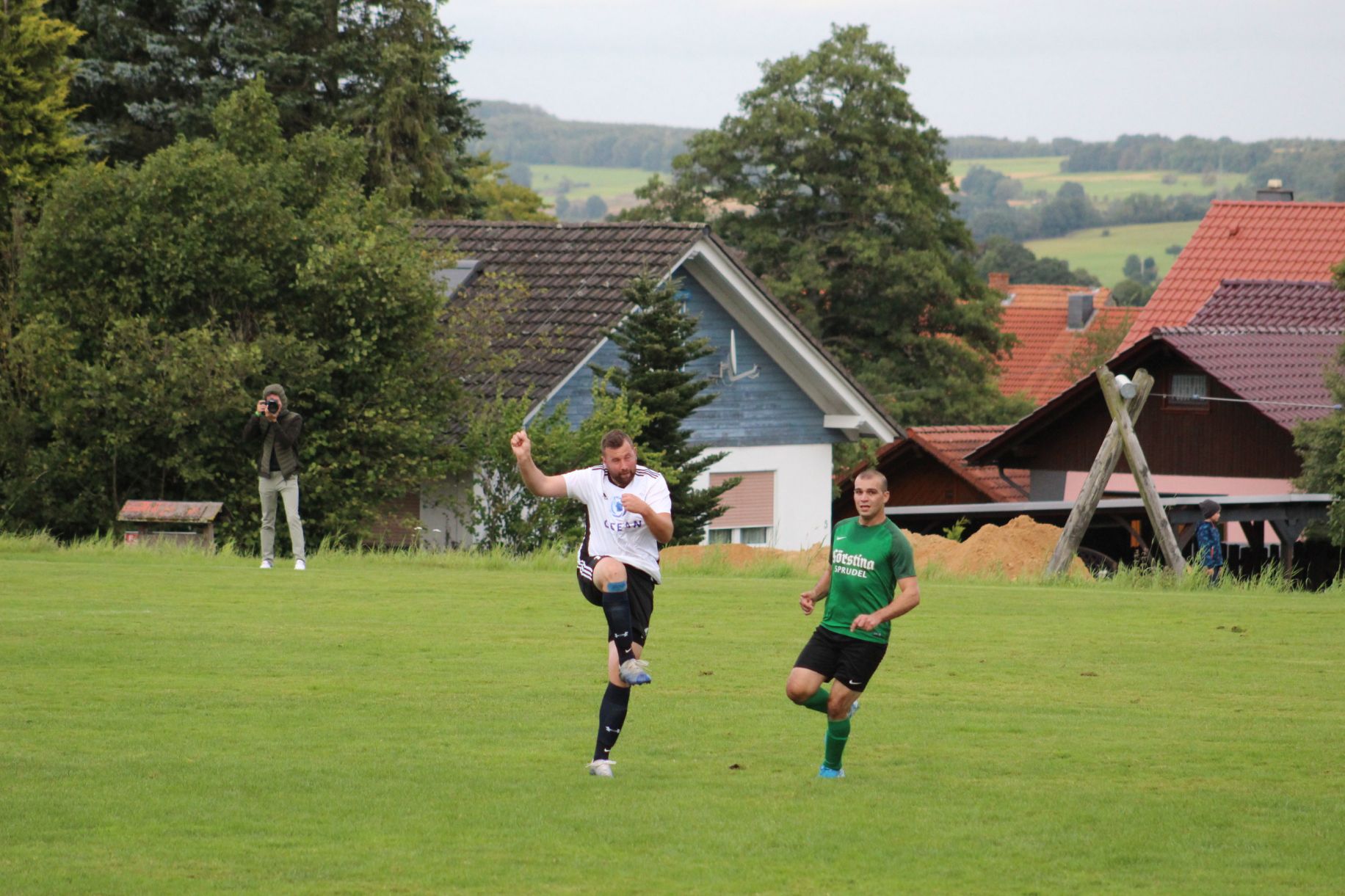 Nicht verwunderlich, dass die größte Chance für Grebenhain, eine verunglückte Kopfballrückgabe von Pascal Eurich war. Keeper Adrian Rohr war in Flugrichtung des Balles unterwegs und Pascal Eurich köpfte den Ball Richtung eigenes Tor. Zum Glück trudelte der Ball gegen den Pfosten und sprang wieder raus.