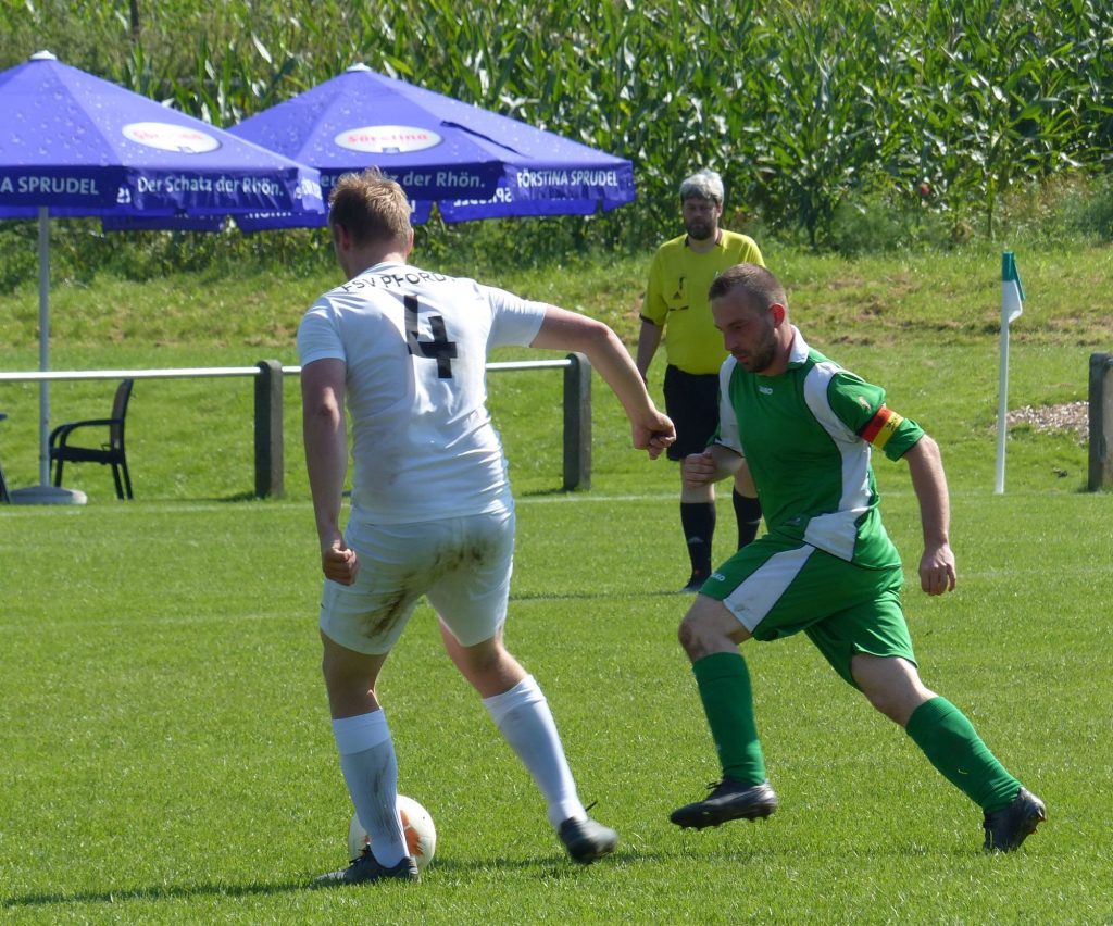 Im ersten Spiel des „Derby-Sonntags“ traf die Reserve des FSV Pfordt auf die Nachbarn der SG Michelsrombach/Rudolpshan II und von Beginn an überschlugen sich die Ereignisse, denn bis zur 18. Spielminute hatte der FSV durch Tore von Oliver Lukas, Joshua Garden und Markus Mühling eine 3:1 Führung herausgeschossen.