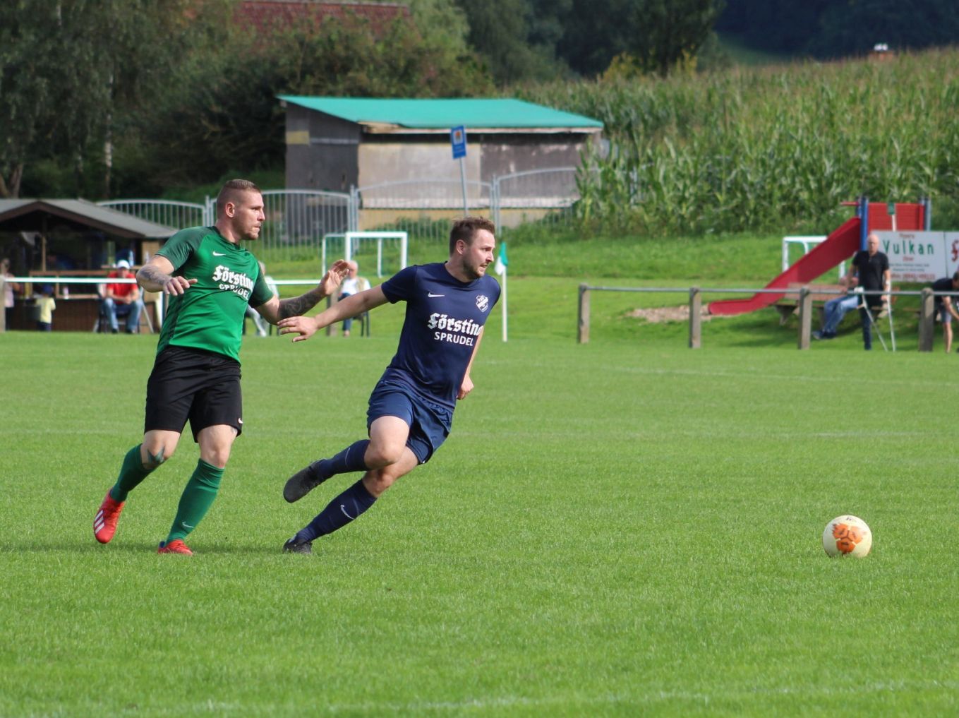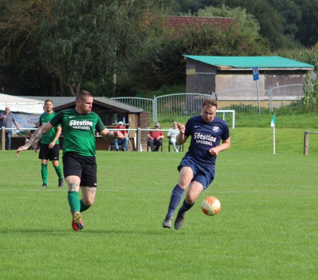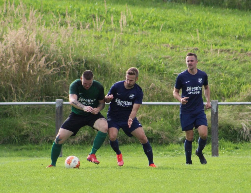 In der 30. Minute gelang dann der Anschlusstreffer zum 1:2. Eine scharfe Ecke von Pascal Eurich wurde per Kopf von David Schäfer Richtung Tor geköpft, vom eigenen Spieler abgeblockt, doch der Nachschuss wurde von Tobias Röder in die Maschen gehauen. Somit ging es mit einem Tor Rückstand in die Halbzeitpause.
