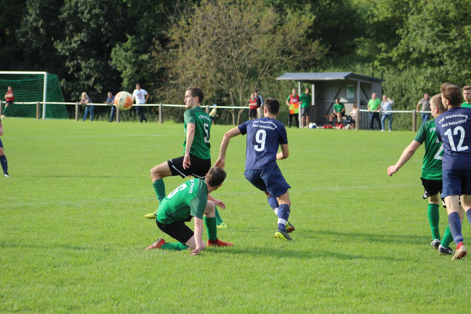 Die Gäste behielten ihre Spielweise bei, was dem FSV den Spielaufbau weiterhin nur schwer ermöglichte. Die Partie wurde nun zunehmend ruppiger, was den Gästen etwas weniger ausmachte. Denn in der 20. Minute klingelte es erneut im Kasten von Adrian Rohr. Der Flügelspieler der FSG Wartenberg brachte die Flanke in den Strafraum und am langen Pfosten herrschte plötzlich eine Überzahl der Gäste. Luca Feick und Adrian Rohr konnten den Kopfball von Mark Petruschke nicht mehr abwehren, sodass es schon nach zwanzig Minuten 0:2 für die FSG stand.