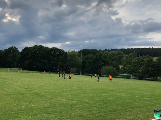 Aber man muss das Beste daraus machen und die Regelungen einhalten. So findet aktuell im Herrenbereich des FSV einmal pro Woche ein Training statt. Wie auf den Bildern zu sehen ist, muss zwangsläufig der komplette Platz ausgenutzt werden, damit die Regelungen eingehalten werden können. Maximal sind 10 Personen gleichzeitig im direkten Kontaktsport erlaubt.