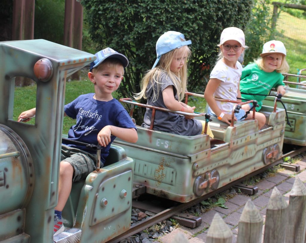 Nun konnten sich alle Mitfahrer auf Erkundungstour begeben. Fährt man zuerst mit dem großen Fliegenpilz oder stellt man sich direkt bei der Sommerrodelbahn an? Wagt man sich zu den Tieren in den Streichelzoo oder versucht man schon mal den großen Vulkan nach oben zu klettern? Schwierige Fragen, die hier geklärt werden mussten.