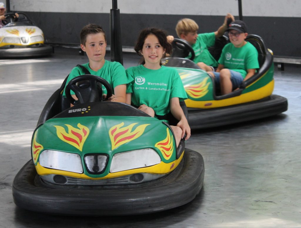 In den viereinhalb Stunden Aufenthalt im Park konnte man aber so einiges erleben. Während die E-Jugendlichen beim Autoscooter fast gar nicht mehr wegzubekommen waren, trauten sich sogar die Bambinis mit dem Kettenkarussell zu fahren. Meist in größeren Gruppen unterwegs, konnte man sich aber immer wieder bei den Grillhütten mal eine kleine Pause zum Essen und Trinken gönnen.