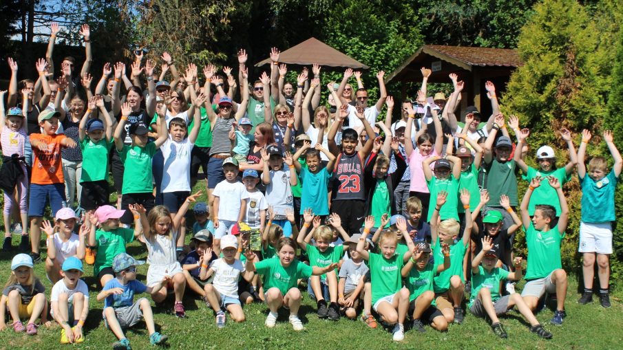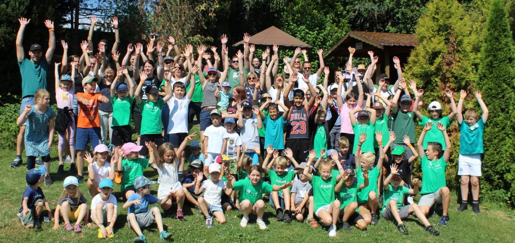 Die insgesamt 78 Personen, bestehend aus Fußballspielern, Geschwisterkindern und Begleitpersonen plus einen Hund wurden alle auf einen großen und kleinen Bus vom Reisedienst Schäfer, sowie auf 2 Privatautos aufgeteilt. Dort angekommen machte sich die Truppe zunächst auf die Suche der zwei Grillhütten, die im Vorfeld gebucht wurden. Das mitgebrachte Fingerfood und die zahlreichen Getränke konnten so dort sicher deponiert werden.