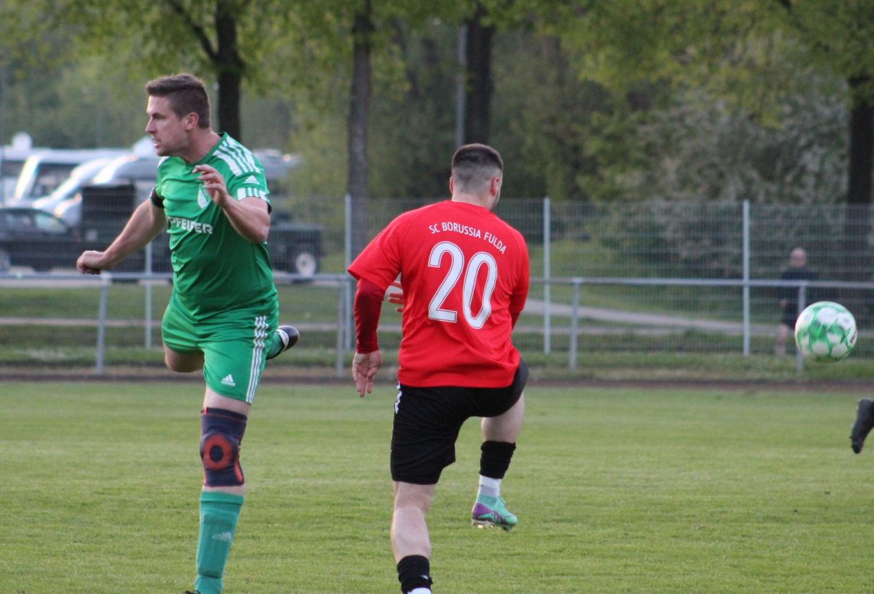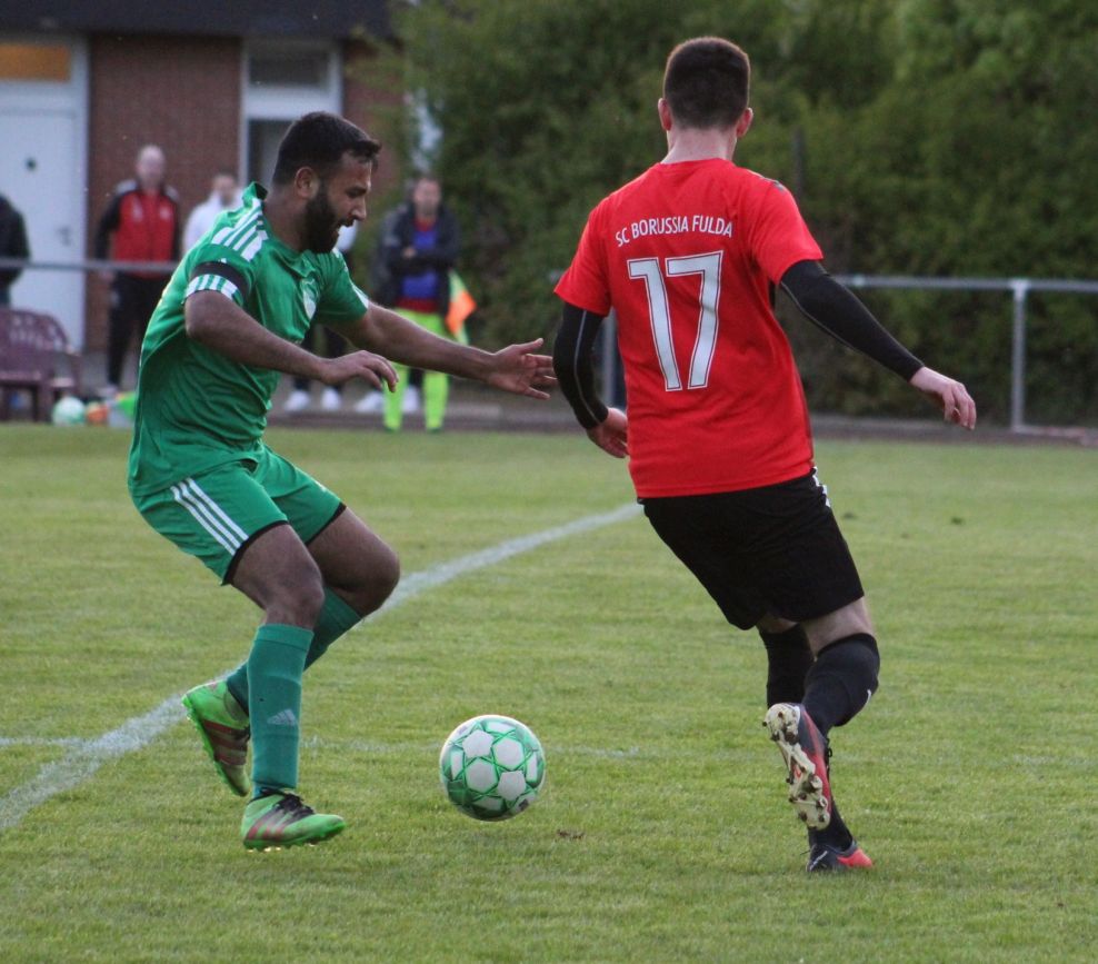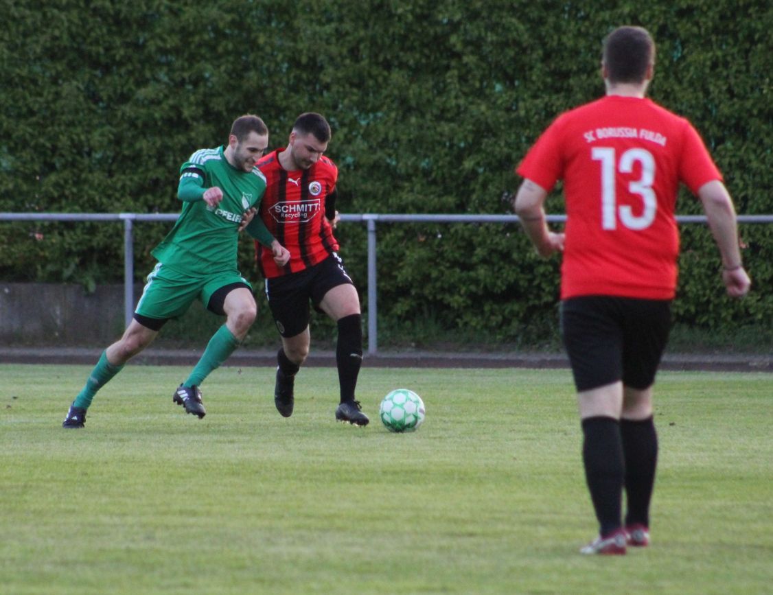 Auf dem Nebenplatz des Stadions der Stadt Fulda entwickelte sich von Anfang an ein spannendes Spiel. Die Borussia aus Fulda übernahm Beginn an das Spielgeschehen, der FSV agierte sehr defensiv, aber auch sehr diszipliniert und lauerte auf Konter. Gefährlich vor dem FSV-Tor wurde es immer wieder nach Standards, die jedoch gut verteidigt werden konnten oder neben das Tor gingen.