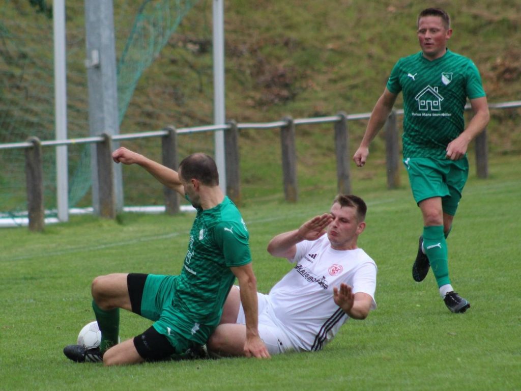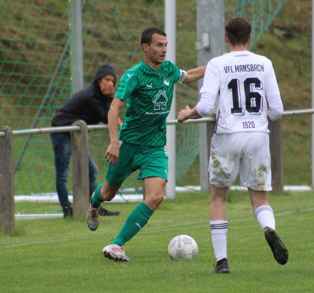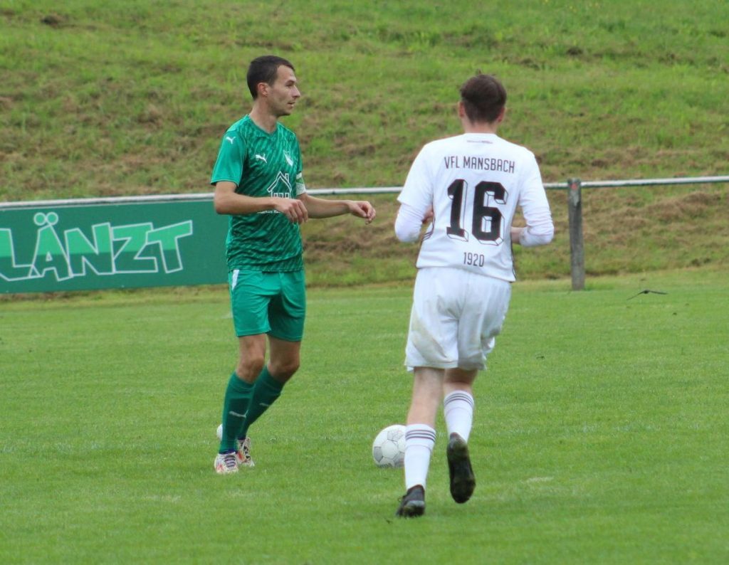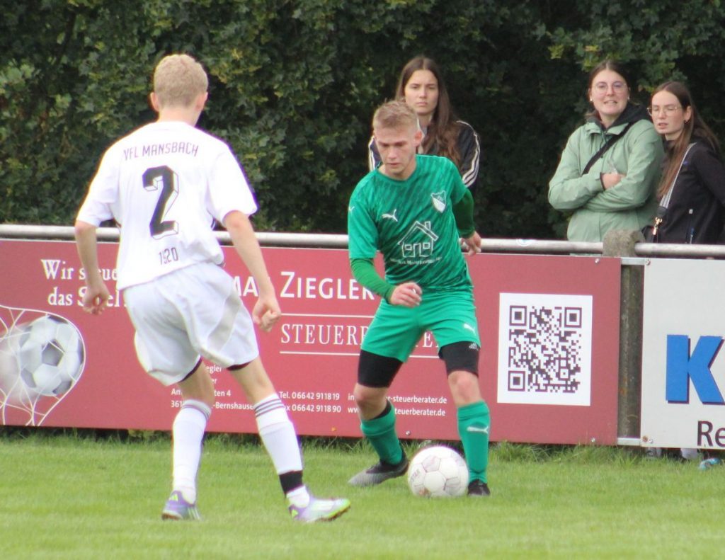 In der Folge verflachte das Spiel etwas – die letzten zehn Minuten der ersten Hälfte boten wenig Struktur. Der FSV ließ sich vom Gegner ein wenig aus dem Rhythmus bringen, ohne jedoch wirklich in Gefahr zu geraten. Der VfL Mansbach kam zwar zu einigen Abschlüssen, diese blieben jedoch harmlos. Kurz vor der Pause hätte es aus Sicht des FSV noch einen Strafstoß geben können: Nach starkem Pressing wurde Philipp Eurich am Sechzehner gelegt, die Pfeife der Schiedsrichterin blieb jedoch stumm.