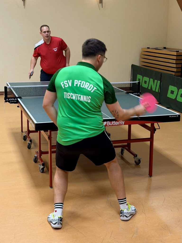 In den anschließenden Einzeln konnten die Pfordter Spieler zwar phasenweise gute Ballwechsel zeigen, mussten sich jedoch in allen Begegnungen geschlagen geben. Besonders Dominik Susemichel und Adrian Rohr stemmten sich tapfer gegen die Angriffe von Steffen Tscheike und Marcel Stumpf, konnten aber trotz einzelner enger Sätze keinen Punktgewinn erzielen.