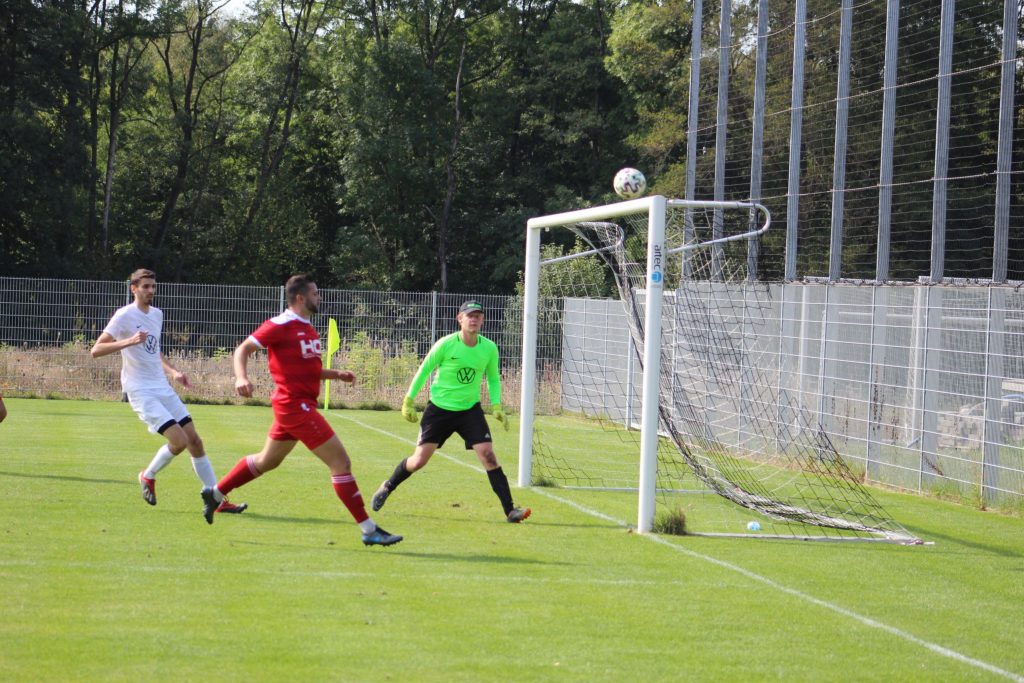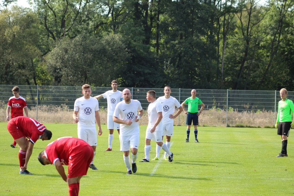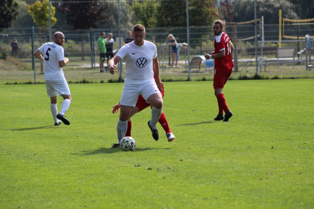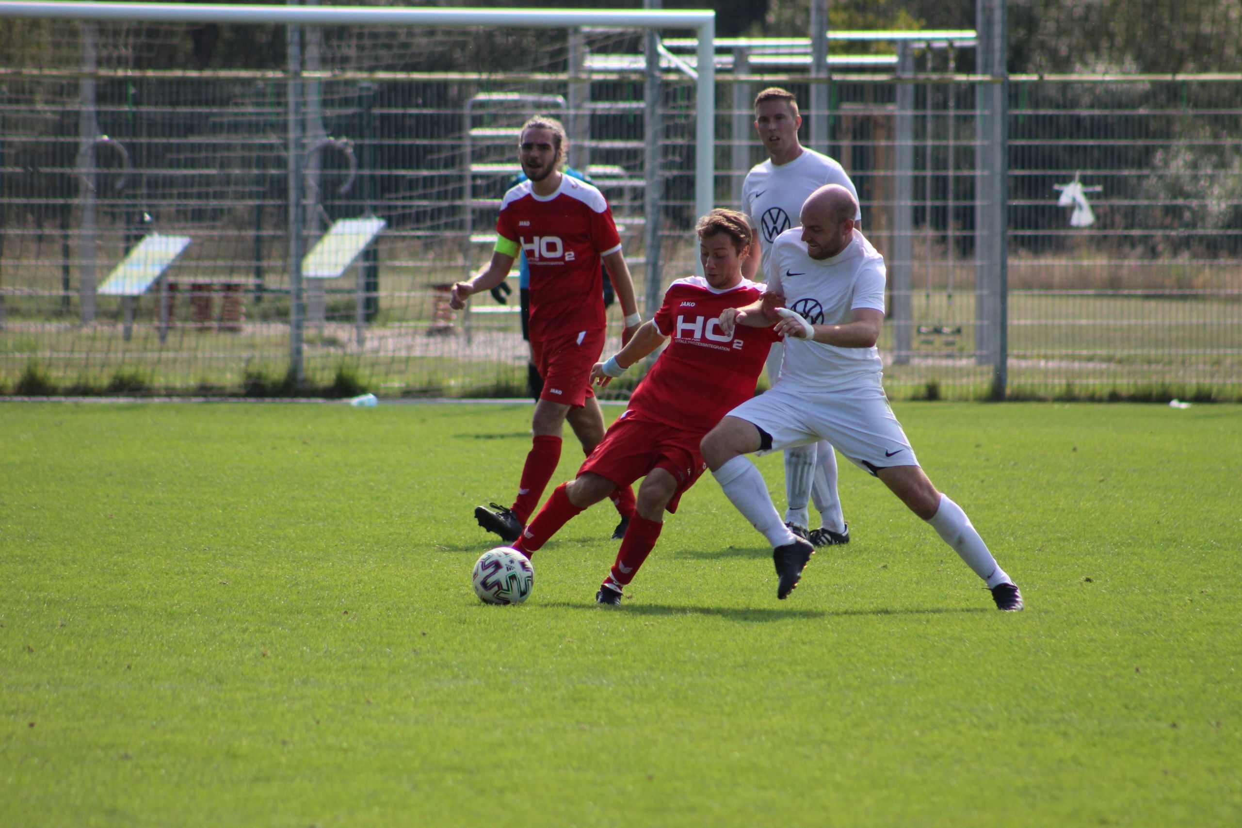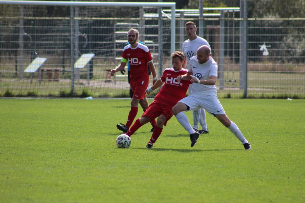 Die Mannschaft von Joshua Garden war aber von Beginn an wach und fand gut in die Partie. Nach 10 Minuten fiel auch bereits der erste Treffer. Ein langer Ball von Paul Trabes, der diese Woche im Tor stand, wurde von Spielertrainer Joshua Garden verlängert und David Schäfer blieb im 1 gegen 1 cool und erzielte so die Führung für die Gäste.