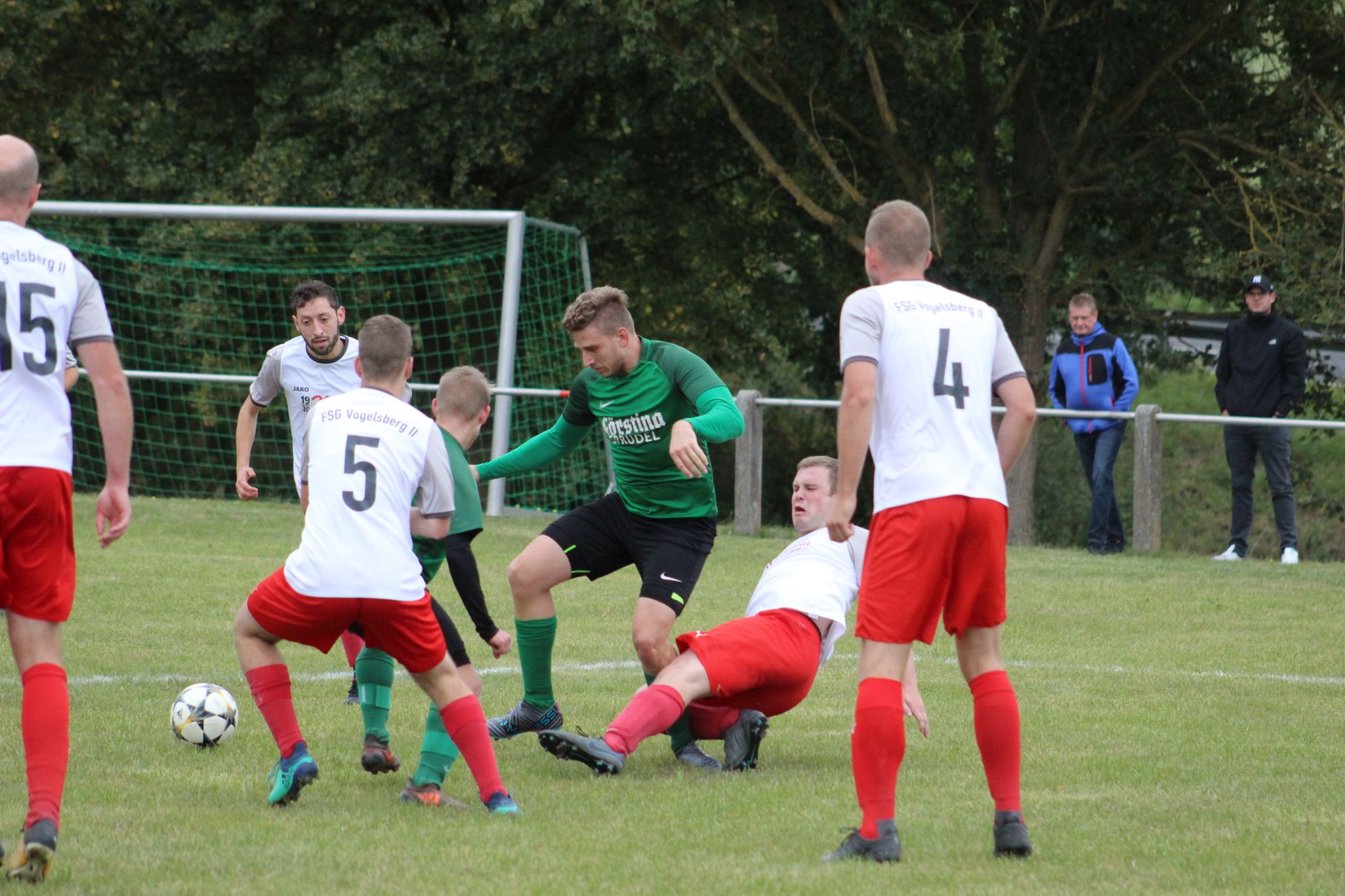 Die Vogelsberger Gäste hatten hier jedoch etwas dagegen und waren mit einer sehr gut bestückten Mannschaft angereist. So begannen die Gäste auch zunächst spielbestimmend und hatten viel Ballbesitz. Dieser schlug sich nach 12 Minuten auch bereits in etwas Zählbarem nieder. Ein strammer Schuss vom 16er landete genau im Winkel und brachte die Gäste in Führung.