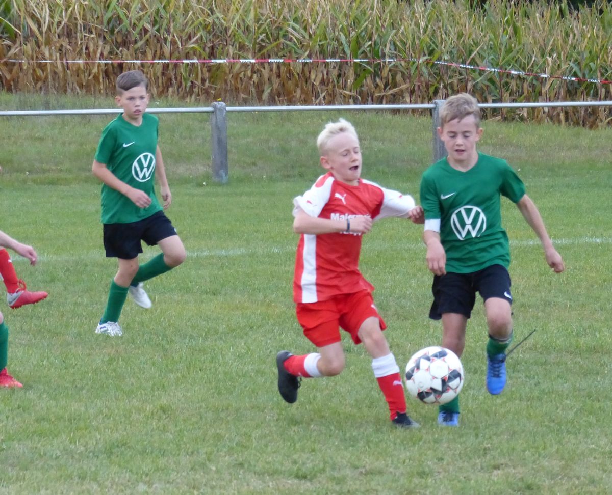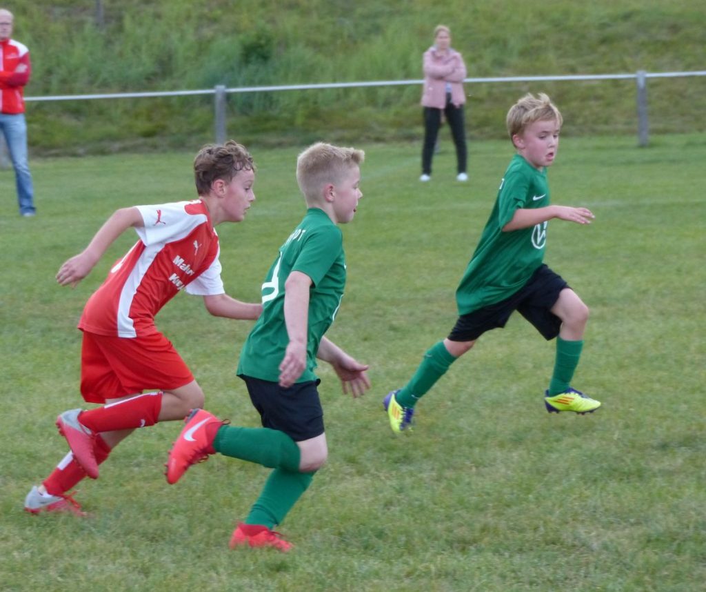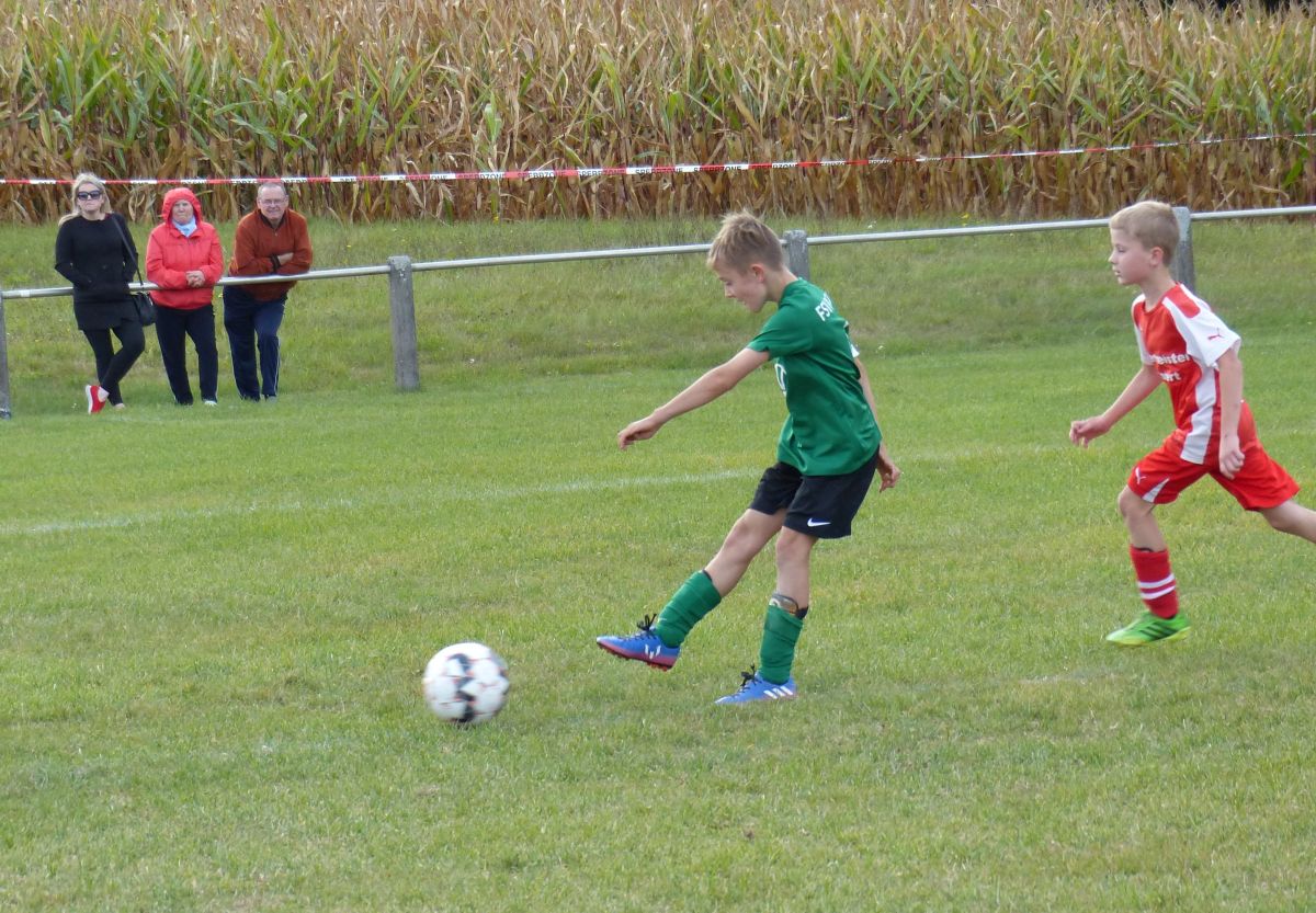 Das Spiel begann mit Chancen auf beiden Seiten. In der dritten Minute konnte der Keeper der JSG einen Schuss von Ben Mattern parieren und nur eine Minute später köpfte ein Schlitzer Angreifer den Ball nach einer Ecke knapp über das Tor.