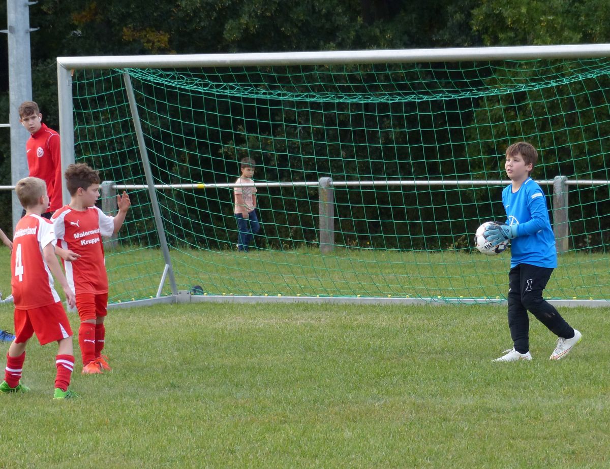 Erst in den letzten fünf Spielminuten ging es nochmal Schlag auf Schlag. Erst erhöhte erneut Ole Heutzenröder durch einen Schuss von der rechten Außenbahn ins kurze Eck auf 6:0. Dann war Theo Rehberger im Tor des FSV chancenlos als ein Angreifer der JSG nach einem Einwurf alleine vor ihm auftauchte und auf 6:1 verkürzte.