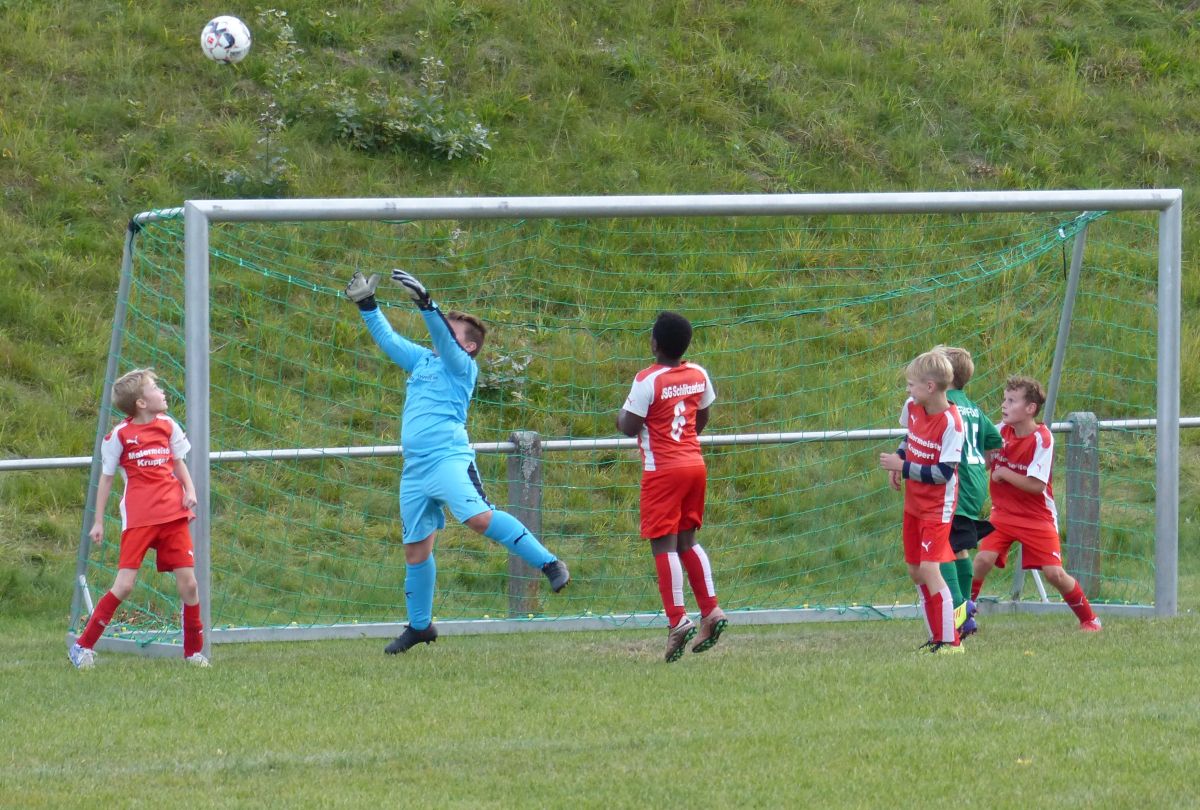 Kurios wurde es dann in der 16. Spielminute als gleich dreimal hintereinander das Aluminium die JSG davor bewahrte noch weiter in Rückstand zu geraten. Mit dem Pausenpfiff war es dann jedoch erneut Ben Mattern, der einen Abpraller nach einem Schuss von Marcel Reider zum 4:0 verwerten konnte.